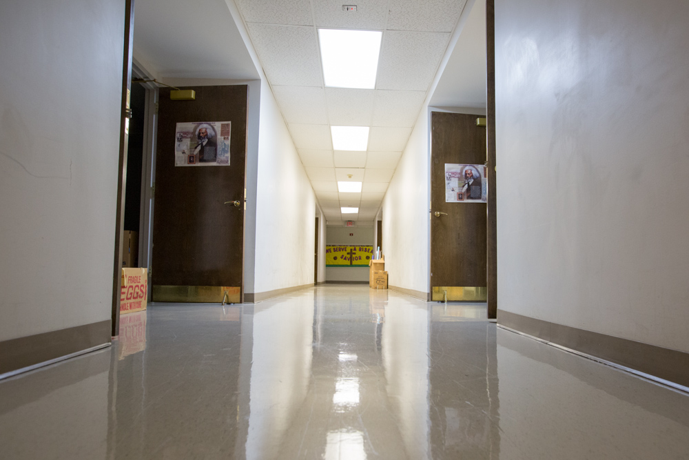May 27, 2014; Atlanta, GA, USA; Church personnel and contractors pack up materials at Friendship Baptist Church, 437 Mitchell Street Southwest in Atlanta. The church held its last service on May 25 before the its buildings will be demolished to make way for new Atlanta Falcons Stadium. The Rev. Dr. William Guy, former pastor of Friendship, delivered the last sermon. The church, founded in 1866 and Atlanta’s oldest black church, received more than $19 million for the land. Photographed for The New York Times. Photo by Kevin Liles/kevindliles.com
