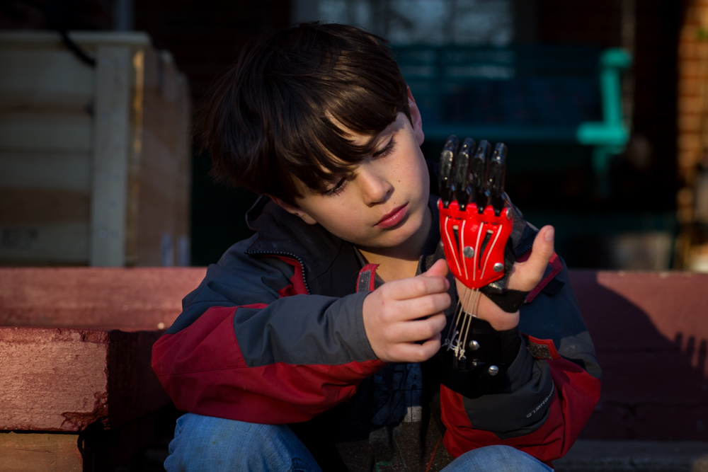 150212_nyt_ethan_brown_1071 March 12, 2015 Ethan Brown uses a prosthetic hand made from a 3D printer. Photo by Kevin Liles for The New York Times