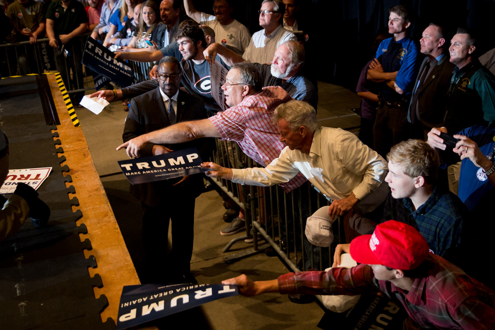151130_nyt_trump_1741 December 9, 2015 Donald Trump signs memorabilia for supporters during a rally at the Macon Centreplex Coliseum on Monday, Nov. 30, 2015 in Macon, Ga. Photo by Kevin D. Liles for The New York Times